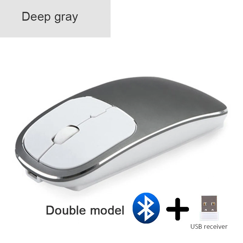 Metal Bluetooth and 2.4G Wireless Mouse Alloy Ultra-Thin Recharge Portable Ergonomic Mice for Mac P